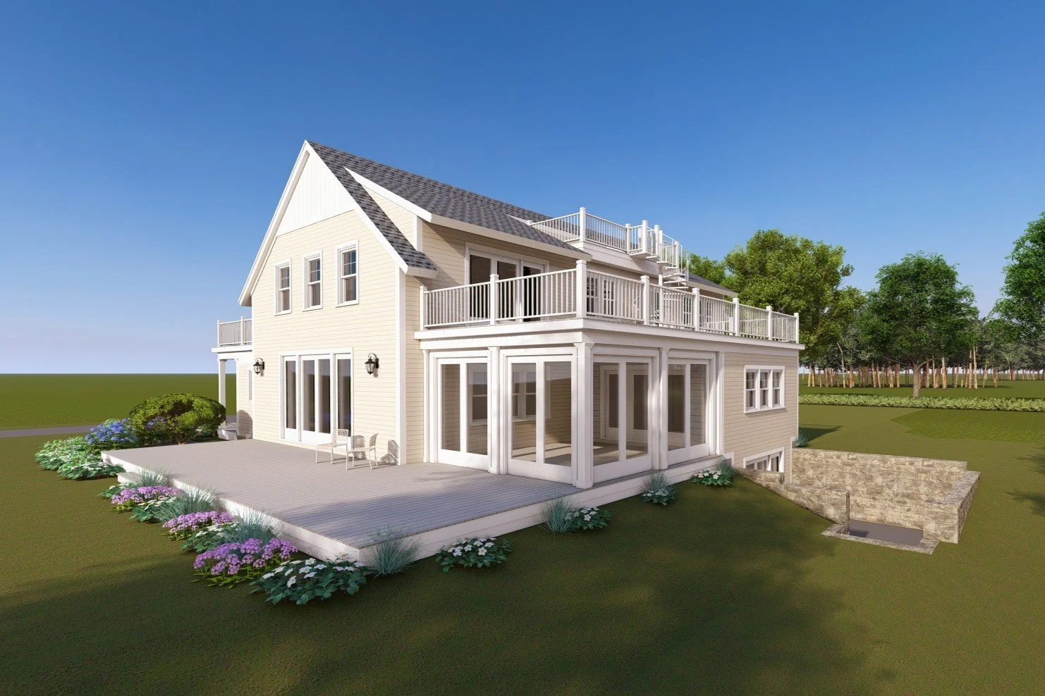 The first of our three homes, it boasts 2,100 sq ft of finished outdoor living space, including a third floor deck with water views. You’ll get plenty of sunshine & salt air all year round.
